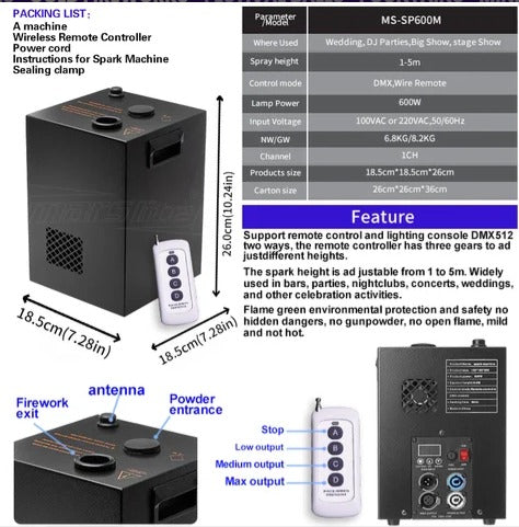 ZS - 600w Stage Cold Spark Machine with DMX and Remote up to 5M