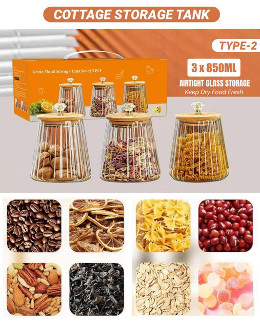 Sold outZS - 3 Pieces Glass Storage Jar Set