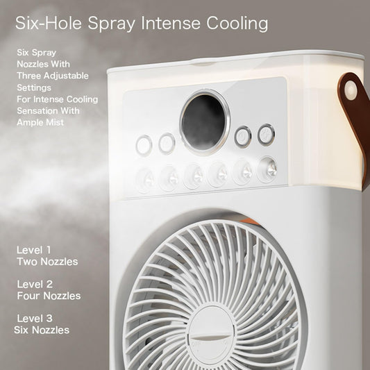 ZS - Dual Fan Mist Cooling Fan with Humidifier, 6 Nozzles 360 Adjustable