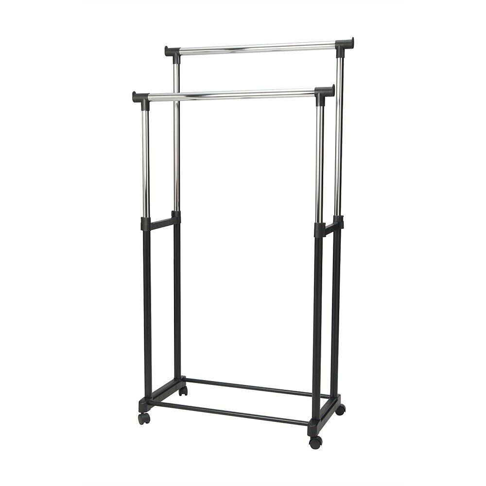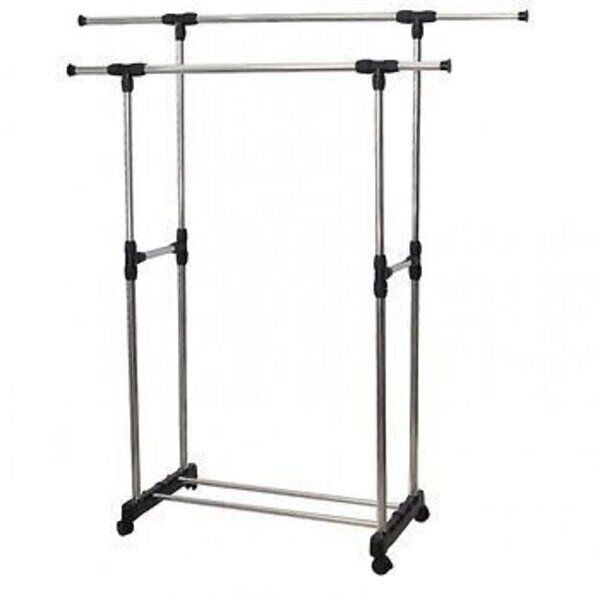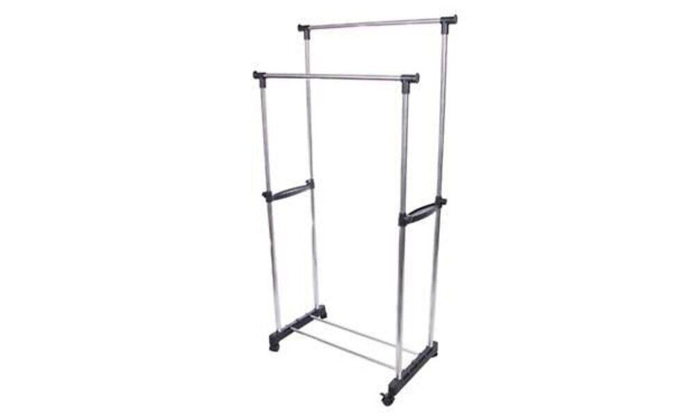 Keep your clothes organised with our Double Pole Telescopic Clothes Rack. Sturdy and durable, this multifunctional rack will hold a large load of clothes with its strong metal frame and two crossbars at the bottom to prevent it from swaying. Height adjustable and its mobile design makes this clothes rack the perfect storage solution for your clothes.