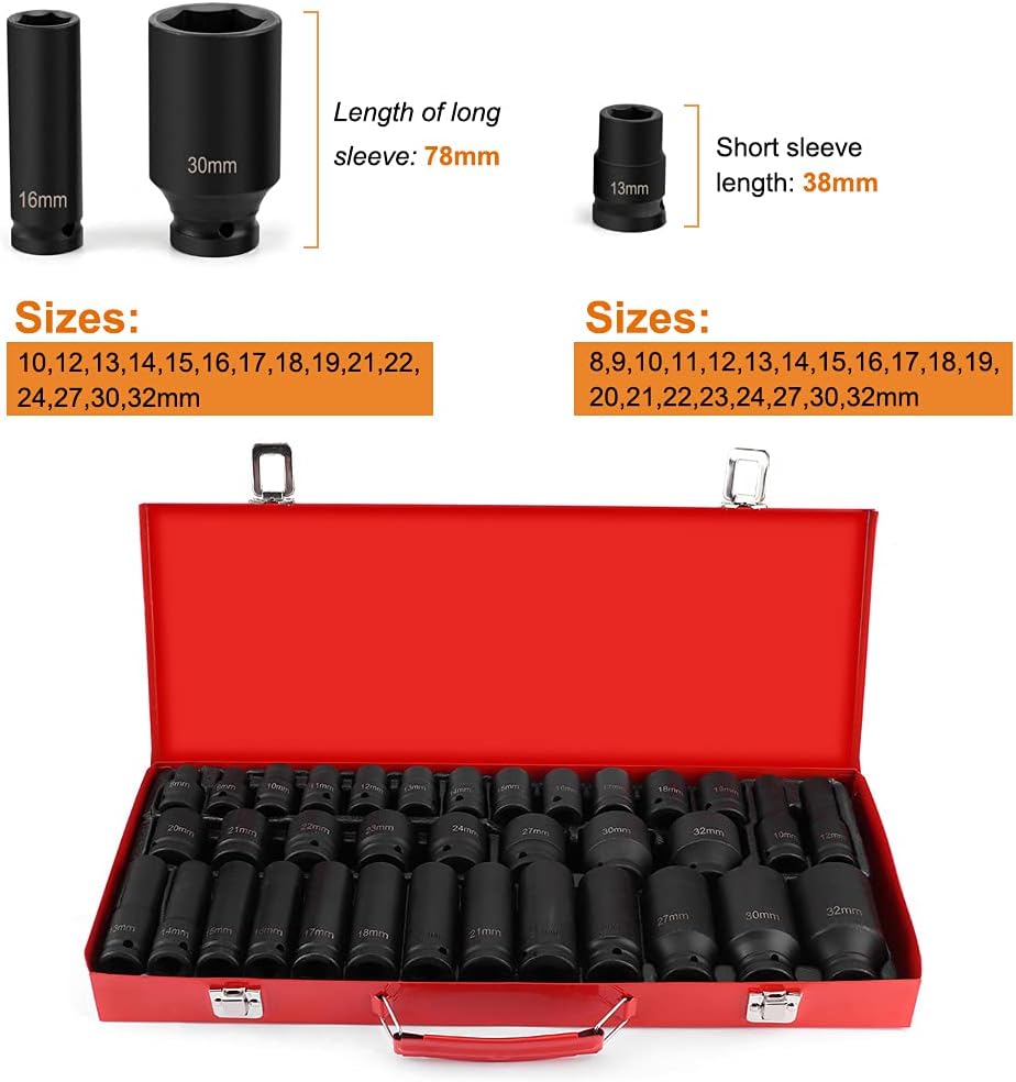 - Durable material: 35 Piece 1/2" Socket Set is made of high-quality Chrome Vanadium Steel (CR-V) for superior strength, durability, and corrosion resistance.
