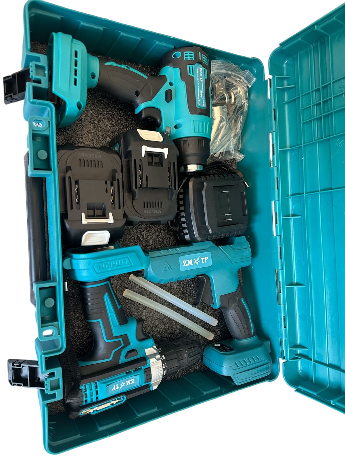 48V 3 in 1 Toolset: Drill, Heat Gun and Hot Glue Gun CORDLESS