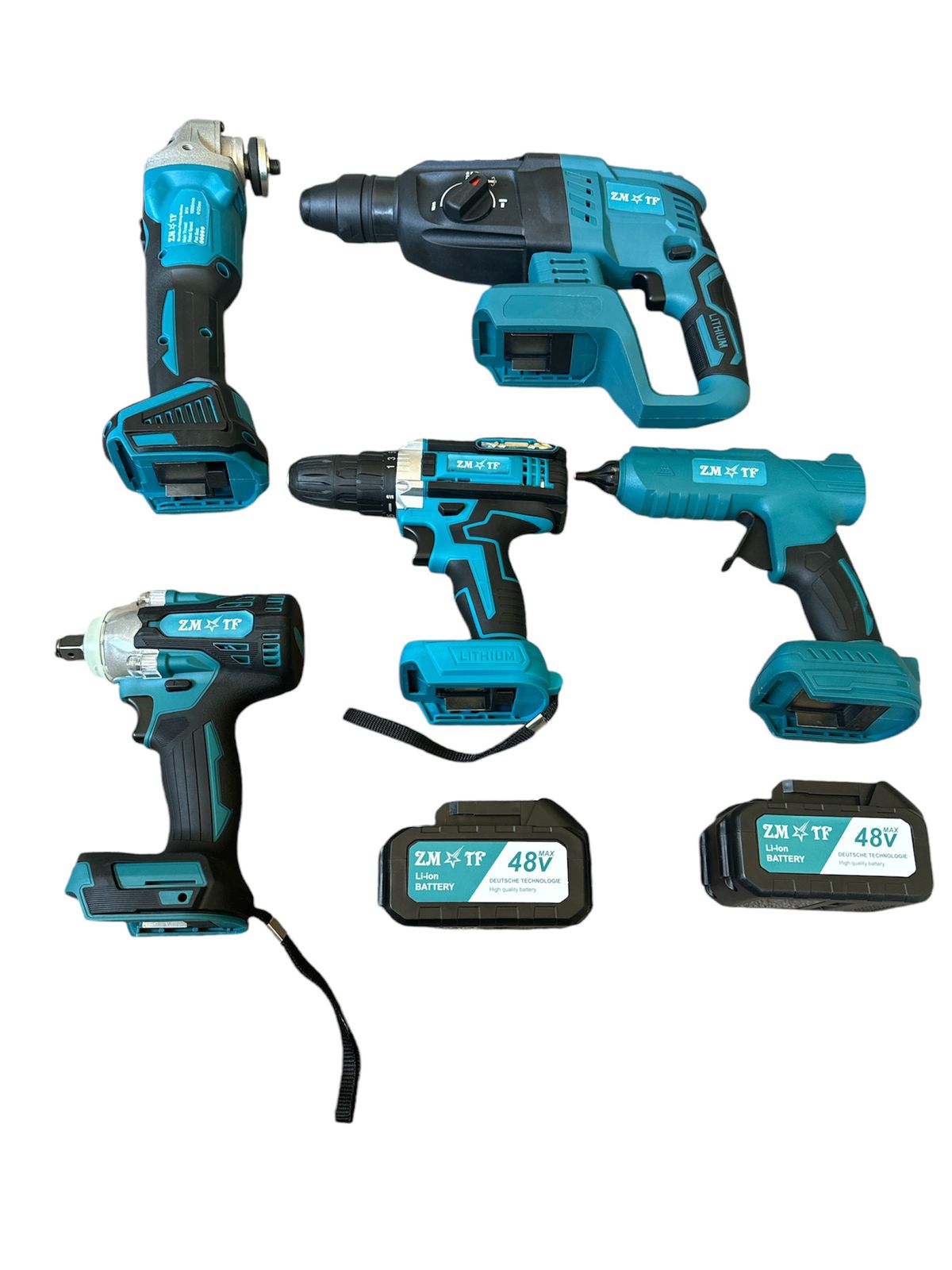 ZS - 48V 5 IN 1 CORDLESS TOOLS - Drill, Hammer Drill, Impact Wrench, Angle Grinder and Hot Glue Gun