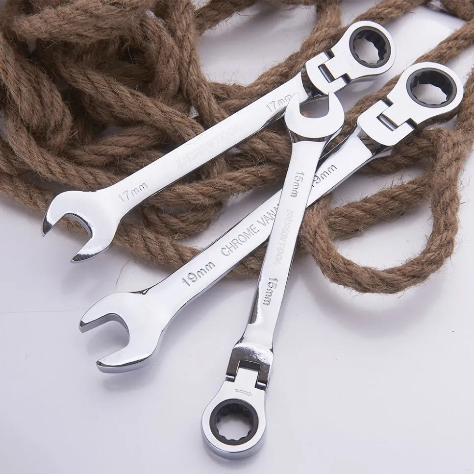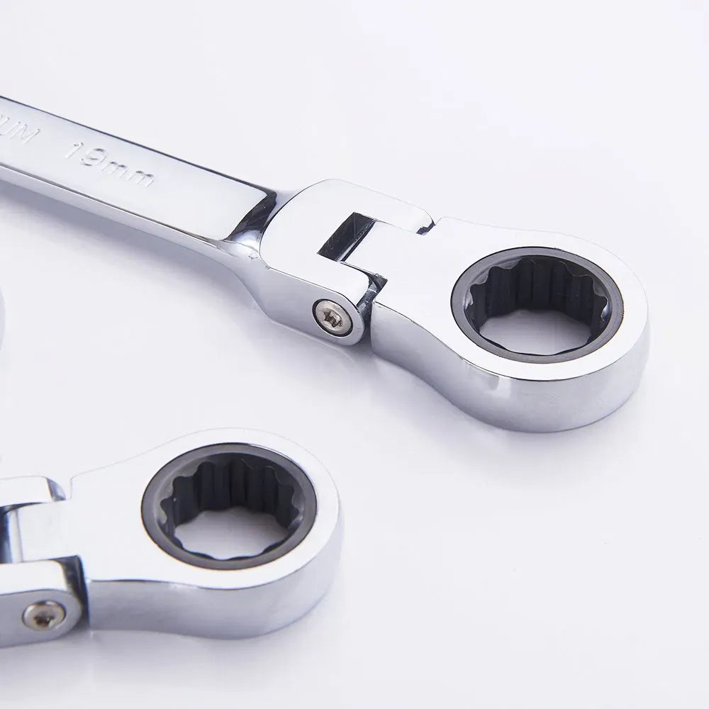 The Ratchet Joint 7-Piece Wrench Set includes a selection of wrenches with sizes ranging from 8 mm to 19 mm, designed for automotive, mechanical, and household tasks. The 72-tooth ratchet mechanism allows for smooth and quick tightening and loosening without needing to reposition the wrench, making it ideal for tight spaces. The chrome-plated finish provides corrosion resistance, ensuring long-lasting durability. The ergonomic handles ensure comfort during extended use. Perfect for DIY enthusiasts, mechanics, and professionals.