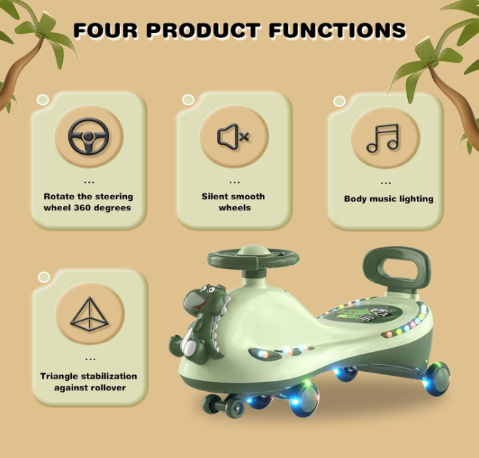 Ride Car for Kids, DMG Magic Swing Cars, Car with PU LED Wheels and Music, Gears or Pedals, Twist, Turn, wiggle Movement to Steer, Boys and Girls, Infant Ride-On Car for 1-10 Years Old Gift