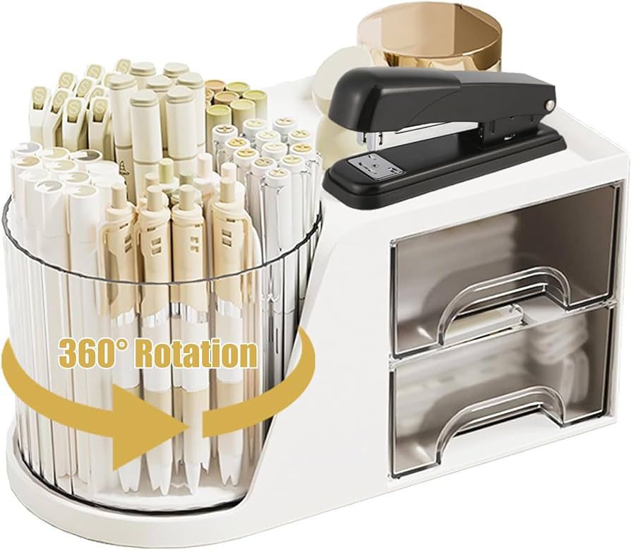 - Smooth Drawers & 360° Revolving Pen Organizer