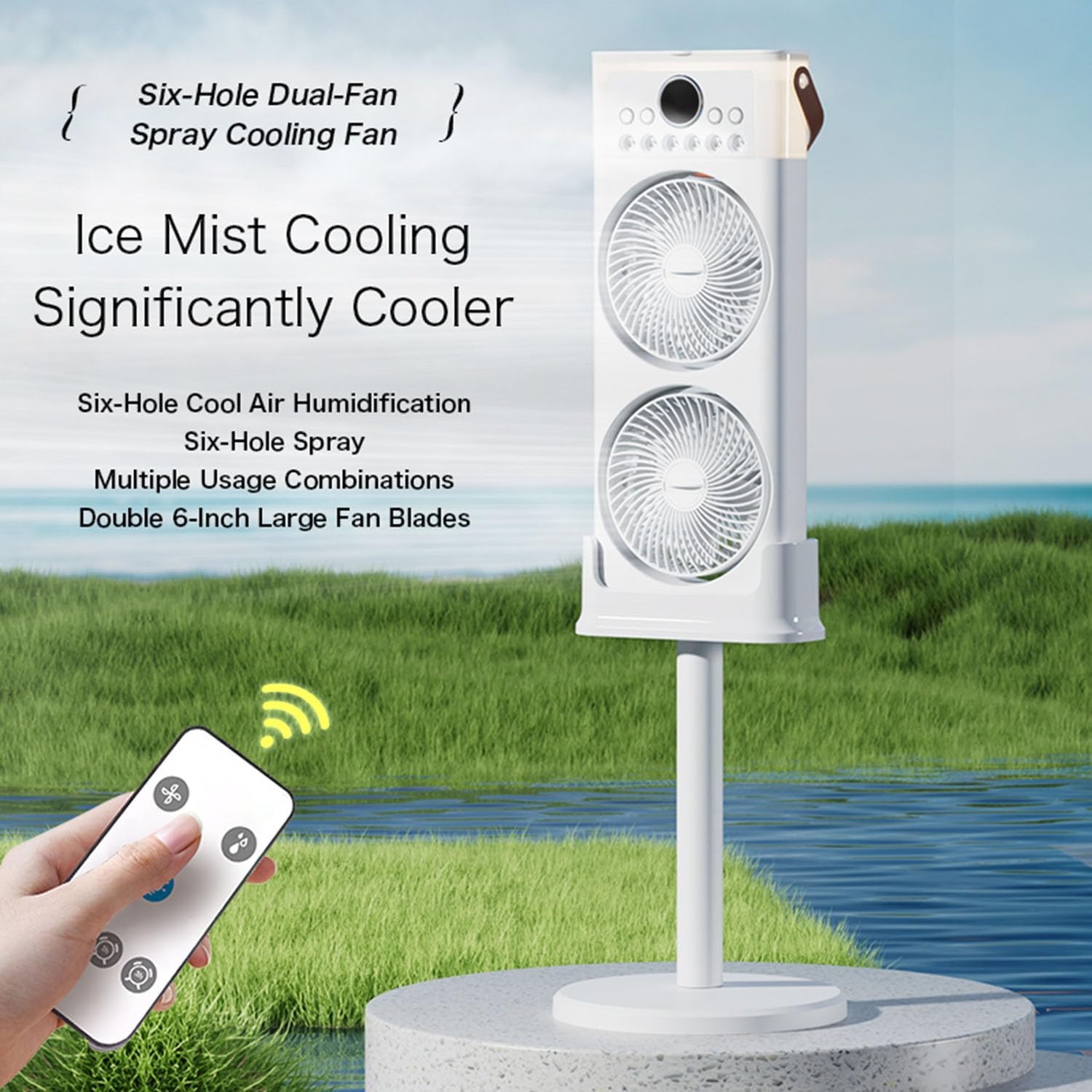 ZS - Dual Fan Mist Cooling Fan with Humidifier, 6 Nozzles 360 Adjustable