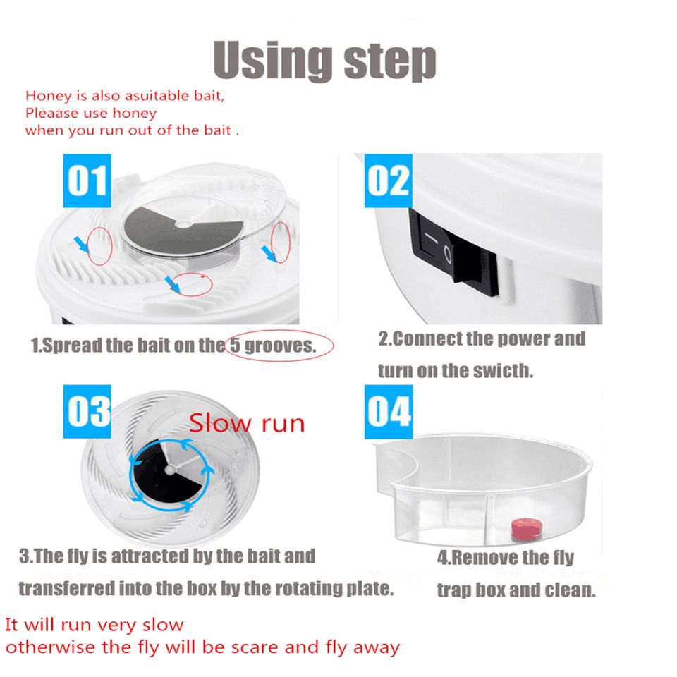 It’s ergonomically designed with revolving blades that catch and traps the fly, and a bait holder for luring the fly near the blades