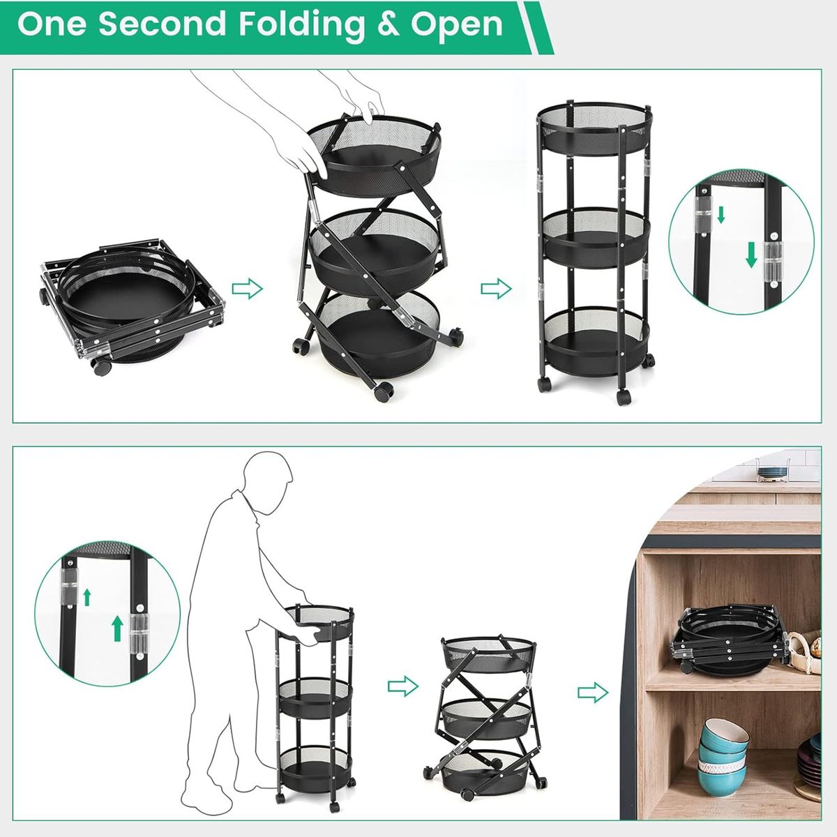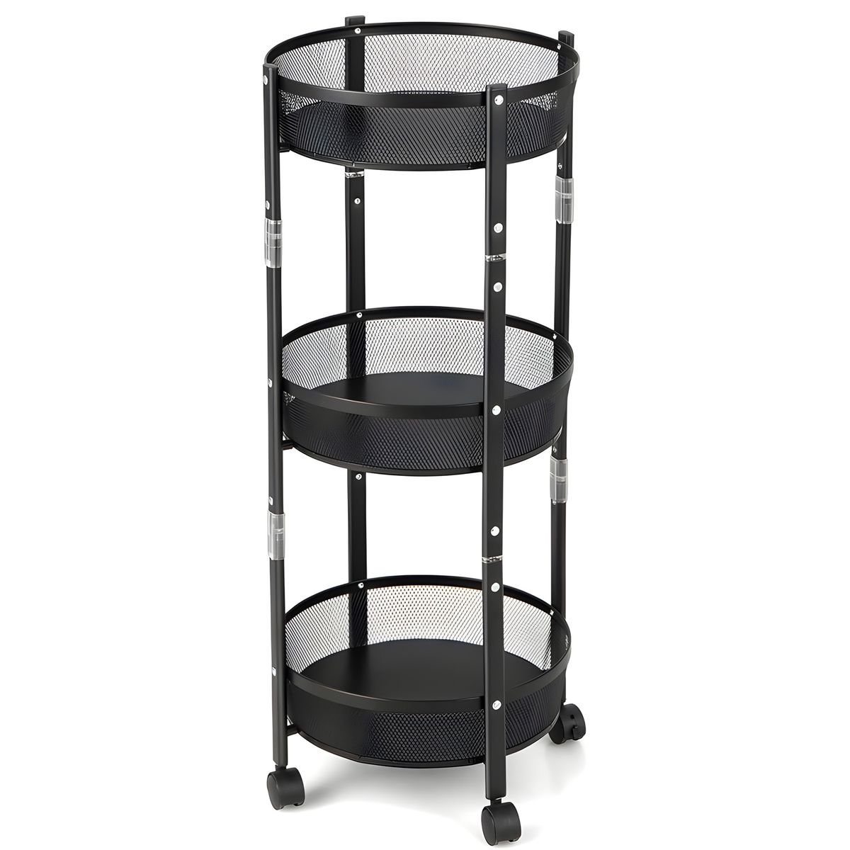 This 3/4-tier round storage rack maximizes vertical space, making it perfect for small kitchens, bathrooms, or living areas. Its compact design allows you to store fruits, vegetables, or other essentials without occupying too much floor space.