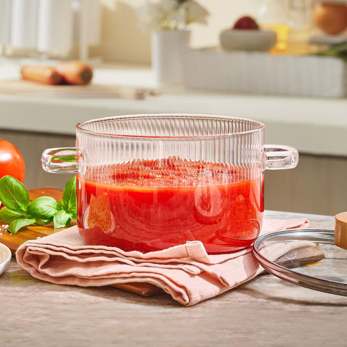 - Stylish & Practical Design: Featuring a sleek, modern look, this ribbed glass pot adds a touch of elegance to any kitchen. Its large capacity and deep shape make it ideal for frying, simmering, and preparing various dishes.