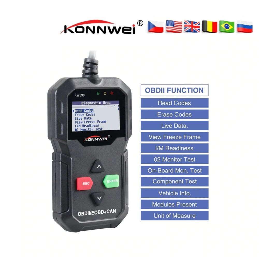 OBD2 Car Diagnostic Tool KONNWE KW590 Support Car Manufacturers: