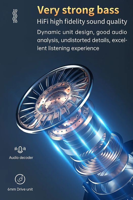Our wireless earbuds with HiFi high fidelity sound quality. Dynamic unit design good audio analysis, undistorted details, excellent listening experience.